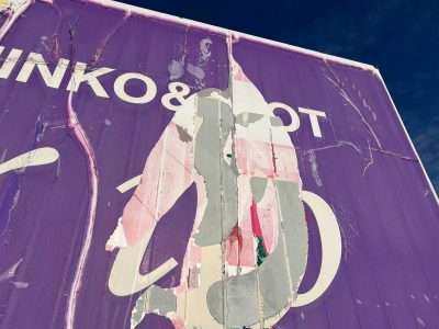 長年の歳月で劣化し、看板の表示面のシートに亀裂が入っている状態でした。